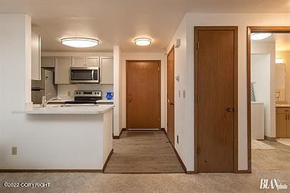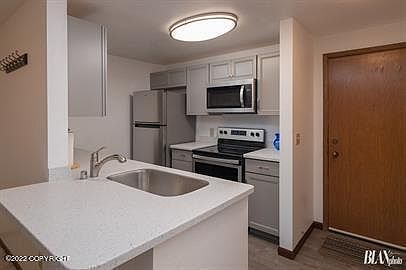 Stunning views of Cook Inlet, Sleeping Lady, Port, enjoy an easy walk downtown. Spacious condo has a newer kitchen remodel, solid surface counters, new cabinets, appliances, bathroom vanity updated. Great layout, personal balcony with storage and wood burning fireplace. Garage space, extra storage area, elevator with controlled access. Dues include heat! Pets are okay.