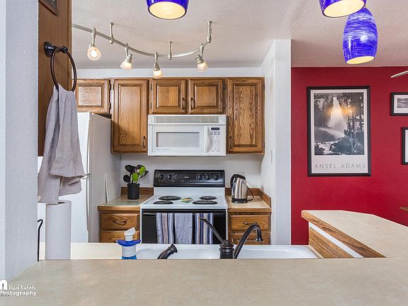 Absolutely charming downtown condo in secure building with elevator and underground heated garage & storage! Corner unit with both south and west facing windows/deck provides for exceptional sun exposure. Beautiful stone-faced, wood burning fireplace is featured in the corner of the living room enhancing the homey feel. Very near to Ship Creek... it's just a couple of blocks from Saturday Market & walking to most things downtown is a breeze. Terrific floor plan and use of space, this home serves many living needs well. New spa-like, luxury, double-headed shower is situated between, and is accessed from 2 separate 1/2 baths! Very low dues include heat and cable & all else except electric! Garage features a private car wash area. Hot water heater 1 year old. Fantastic home at a terrific price! Dues include cable TV.
