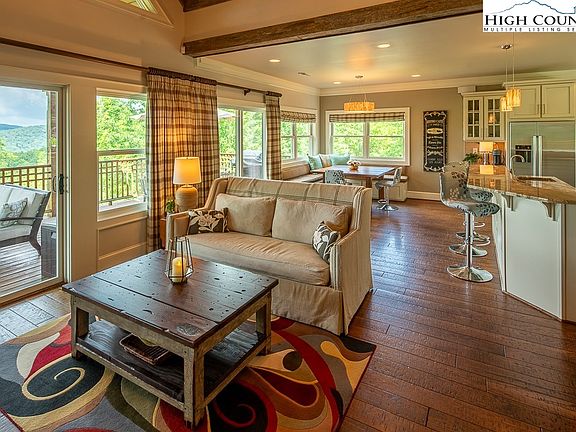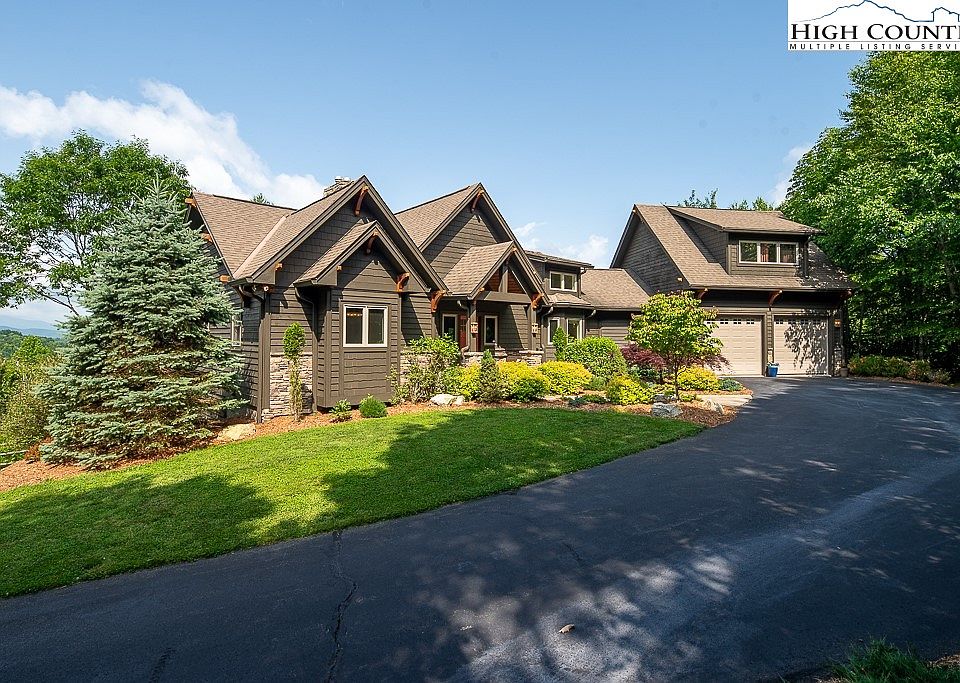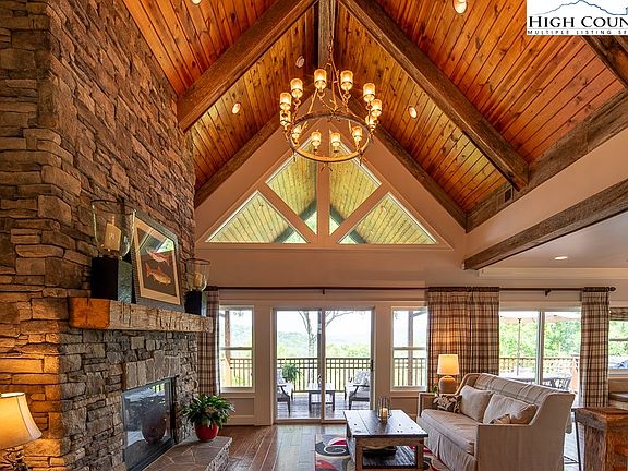 BEAUTIFUL mountain home with long-range layered views! This gorgeous property features vaulted ceilings with beams, and wood floors throughout. The floor-to-ceiling stacked-stone fireplace has vented gas logs and a hand-carved mantle. There are 3 bedrooms and 4.5 baths, plus a bonus room currently used as an office. The spacious kitchen boasts Bosch stainless steel appliances, granite countertops, and two separate sink areas. There is a second den area downstairs, plus a wet bar, fireplace, and two bedrooms including a bunk room with five beds that is fantastic for the kids or fishing friends. The laundry area leads to an attached 2-car garage. The furnishings convey, with a few exceptions. Headwaters is a gated community. Common areas include two small lakes and pavilion for relaxing and fishing, and streams with waterfalls. Located just minutes from downtown Banner Elk, skiing at Beech Mountain and Sugar Mountain, shopping, dining, Grandfather Mountain, and the Blue Ridge Parkway! Long term and short term rentals (7 day minimum) are permitted. This is the perfect mountain home to enjoy as a primary residence, second home, or investment property!