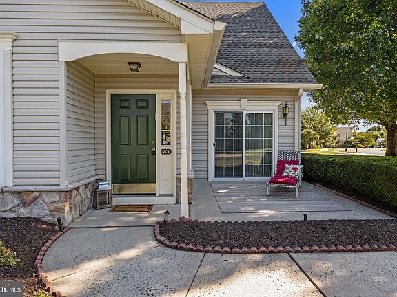 Welcome home to 201 Bellflower Road, a Rosewell Model Quad in the desirable 55+ community of Flowers Mill. Enter this home through the covered porch and be welcomed by a foyer leading to a large, open concept living room, dining room and kitchen setup with vaulted ceilings which add to the grandeur of the space. Just to the left of the foyer, a set of double doors open into a den/study which makes for a cozy sitting room or private office space. Back in the living room. don't miss the sliding glass door that will lead you to a patio perfect for relaxing and enjoying a morning coffee or grilling dinner for family and friends. The nicely sized kitchen features granite countertops, stainless steel appliances, 42" cabinets, room for a kitchen table and a large pantry. You'll love the first floor primary suite with vaulted ceilings, 2 sets of closets, a walk-in as well as an additional double closet, and an ensuite bathroom with double sink and stall shower. The main level also features a second bedroom and additional full guest bath. Finishing out the first floor you will find the laundry room with access to a 2-car garage with additional storage space, everything you need all on 1 floor! But as a bonus, you will find a finished loft with half bath, a large space with so many possible uses, a secluded retreat for visitors, private office or hobby room, or just the extra storage anyone trying to down-size will love. This house has all the room you need to make it your home. Of Note: Roof (2022). Enjoy all the activities that Flowers Mill has to offer including a recently updated clubhouse, indoor pool, outdoor pool, tennis courts, bocce, NEW pickle ball courts, walking trails and a calendar full of events.