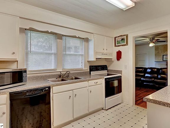 Cute Two Bedroom, Two Bath home on an acre with quick easy access to HWY 25 to go Downtown or shoot up to the North Carolina mountains! Peaceful setting for this great home. Enter the large front porch with fans for staying cool on those beautiful summer evenings. The front porch looks out into the woods and if you listen, you can hear the creek! Step inside into the office/living room which adjoins the guest bedroom. Through the office you will find the den at the heart of the home, complete with a fireplace! Off of the den, you have the master suite with an updated bathroom! Also off of the den is the kitchen and dining area along with the laundry and guest bath. Hurry to see this one soon!