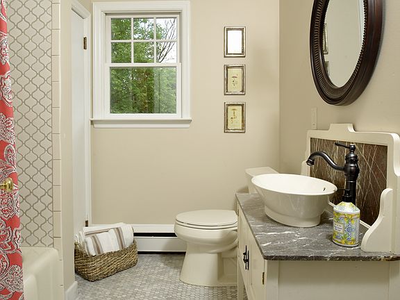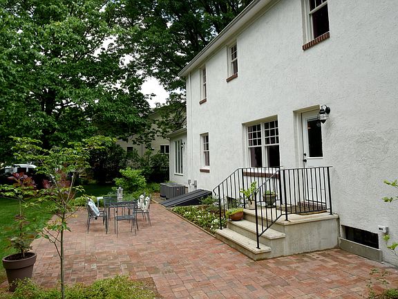 NEW* Detached garage added. Check Virtual Tour. This timeless center hall Colonial of authentic brick & stucco, built when quality construction mattered. This bright home has been completely renovated & re-designed with flair. A new flagstone walk leads you to the new front door with its elegant millwork surround. Upon entry you will immediately notice the extra-height ceilings. There are four bedrooms and three full bathrooms (including a new first-floor bedroom with en suite). The master has its own brand-new en suite. The baths all feature marble tile floors, and showcase antiques re-purposed into vanities with marble tops and vessel sinks. All showers feature marble or tile walls, with a frameless door in the master. The new kitchen is efficiently designed with a spacious eat-in breakfast area. Note the handsome slate floor, the hammered copper farm sink, and the creamy granite counters with unique tile backsplash. Task lighting serves the most demanding chef. Glass cabinetry showcases your most prized treasures. Here you will find GE Profile Series dark stainless steel appliances, paired with a spacious French-door refrigerator. The efficient gas cook top features a pot filler, with wall oven nearby. The full pantry is at hand for all culinary adventures. The formal dining room with custom chair rails and living room both feature large bay windows. There is custom millwork throughout, including a newly-designed fireplace mantel and surround. The lovely original hardwood floors have all been freshly restored. The walls are plaster and All have been newly repainted. Beautiful French doors lead from the kitchen to a large living room with wood-burning fireplace. The first floor bedroom is perfect as an in-law suite, and features three-foot wide doors into the room's entrance and into the bathroom entrance. This room has a large picture window framing the view to the lovely back yard. The upper level is equipped with many closets. Here you will find the spacious ma