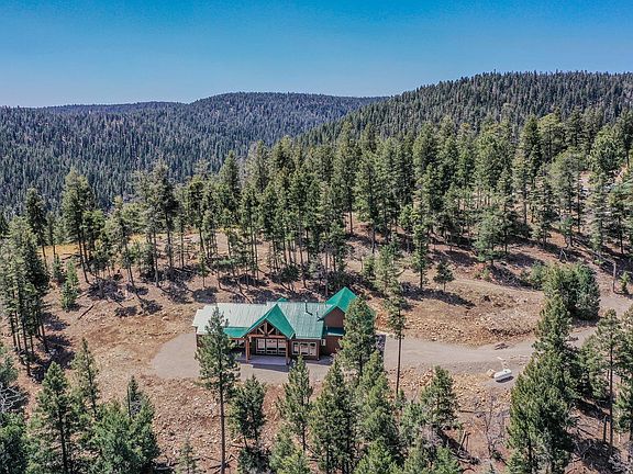 Private Mountain Retreat with Breathtaking Views – Built in 2023 Enjoy stunning, private mountain-top views from this beautifully crafted 3-bedroom, 2-bathroom home nestled on 5.7 acres that back directly onto the Lincoln National Forest. Built and finished in 2023, this home blends modern comfort with rustic mountain charm. Step into the open-concept great room, where a soaring 10-foot wood plank ceiling, warm wood-look tile flooring, and a cozy stone fireplace create the perfect space to relax or entertain. Expansive windows frame panoramic canyon views, flooding the space with natural light. The chef’s kitchen is a delight, featuring sleek granite countertops, a large island with seating, and ample cabinetry. The split floor plan offers two guest bedrooms and a full bath on one side, with the private primary suite on the other. The spacious primary features a dual-sink vanity and a large walk-in shower, offering a spa-like experience. Additional highlights include durable heavy-gauge metal roof. Well-cleared property for safety and views. Attached 2-car garage to protect your vehicles from the elements. Advanced water collection system, supplemented by a community water connection. Fiber-optic internet and nearby cell tower for strong connectivity. Community covenants protecting dark skies – ideal for stargazing enthusiasts. A rare opportunity to own a peaceful slice of mountain paradise with modern amenities and awe-inspiring views. Schedule your showing today!