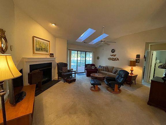 Fully furnished 3 bedroom, 2 1/2 bathroom patio home in the established community of Inland Greens. Large living room with vaulted ceiling flows into dining area. Fully stocked kitchen with bar seating. Split bedroom plan for privacy with the master suite on the left side of the foyer. The master suite offers an attached bathroom, a large double closet and private access to the screen porch. The second and third bedrooms share a hallway bathroom on the backside of the living room. There's an attached 2-car garage for storage conveniences. Backyard is surrounded by privacy with a screen porch with pergola and view of the golf course, separate side patio with access to the kitchen and completely fenced. Inland Greens is uniquely built on a Par 3 Golf Course offering lots of open space. Community clubhouse, swimming pool, tennis courts, pickle ball courts, maintained trail and playground. 6 month lease No Smoking Pet if approved with pet fee Application fees apply