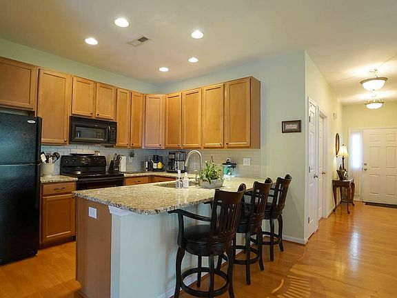 Beautifully updated by Original owner. 3-bedroom end-unit Ranch townhome in the highly sought-after Carpenter Park community! This spacious home features a large open-concept layout with hardwood flooring in the main living areas and an upgraded kitchen complete with granite countertops, a leveled bar, and a stylish tile backsplash. The stunning primary suite includes a walk-in closet and a newly renovated en-suite bath showcasing a floor-to-ceiling tiled walk-in shower with a built-in niche and sleek glass door. Two nice size guest bedrooms. One guest bedroom features a charming palladium window that fills the space with natural light. Relax in the inviting family room with a cozy corner gas log fireplace—perfect for quiet evenings. The backyard features an oversized patio for entertaining, storage room and vinyl privacy fence. New Roof in 2024. Ideally situated near great restaurants, top medical centers UNC and Duke hospitals, Jordan Lake, I-540, and popular shopping destinations.