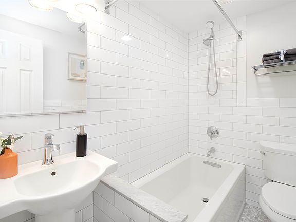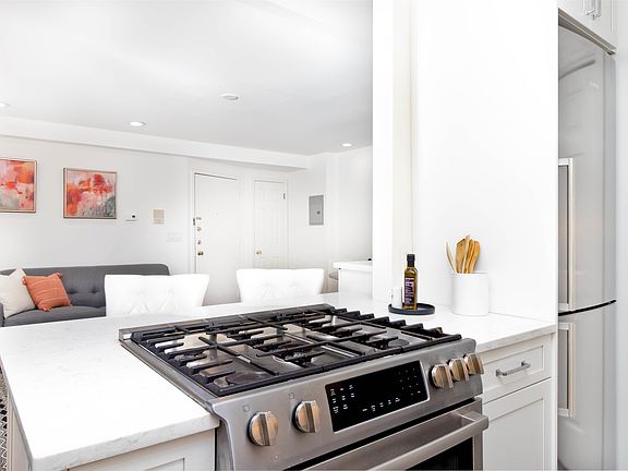 Welcome to this recently renovated 1 bed 1 bathroom located in one of the most desirable locations in all of Hoboken. This home has a spacious layout and is flooded with natural light. The living area flows right into the kitchen. The kitchen features marble countertops, a breakfast bar, and stainless steel appliances. Updated bathroom with soaking tub perfect for unwinding after a long day. This home offers a full-size washer and dryer, and parking is included as part of the maintenance fee and is located right around the corner at the garage on 2nd and Hudson Street. Just steps away from all of the shops, restaurants and transportation that Hoboken has to offer. It will not last!