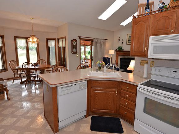 : Spacious open concept ranch located in highly sought Pheasant Creek subdivision. Look no further as everything you want is here. Featuring 3 bedrooms, 2 full baths, whirlpool tub, his & her vanities. Lg. great room w/vaulted ceilings & FP. Eat in kitchen, formal DR for entertaining. Lg. 1st floor laundry w/an abundance of cabinetry. Four seasons room overlooks a beautiful rear yard. Oversized 2 car attached garage, as well a lower level that has unlimited potential for expansion. Bsmt. has been plumbed for 3rd bath & wet bar. Just minutes from I-94. Wonderful walking neighborhood close to shopping and restaurants, only 10 minutes for I-94. Start your memories here in Pheasant Creek! Smoke free, Pet free, one owner home.