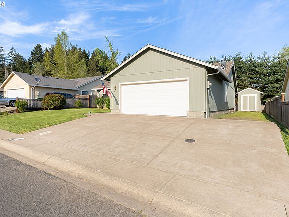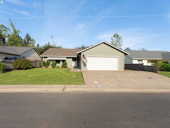 WOW! Come check out this clean, move-in ready, well-built 1682 sq ft, 3 bed, 2 bath on a 0.15 lot. You will see immediately from the curb appeal that this lovely home has the pride of ownership shown throughout when walking this lovely oasis. Sitting in a quaint, quiet neighborhood close enough for a short & safe walk to schools & amenities saving gas money and providing walkable areas for exercise or a nice stroll. Only minutes from the I-5 corridor & 20 minutes from Eugene make commuting a breeze for work or pleasure to a bigger city without having to pay those higher property taxes or prices buying in Eugene. Mini-split unit easily heats and cools the entire space. Enjoy updated laminate flooring in the entryway and kitchen as well as newly added accents with the tile backsplash in the kitchen and bathroom that add updated character and charm. With a full sized garage boasting built in shelving and a storage shed to store more of your things bring extra value to this property. With trees for natural privacy in the backyard, not having to be bothered with neighbors or any future developments due to the wetlands make BBQs fun with no lookie-loos. Priced to sell! Come check this gem out before it's gone! Call & schedule your showing today!