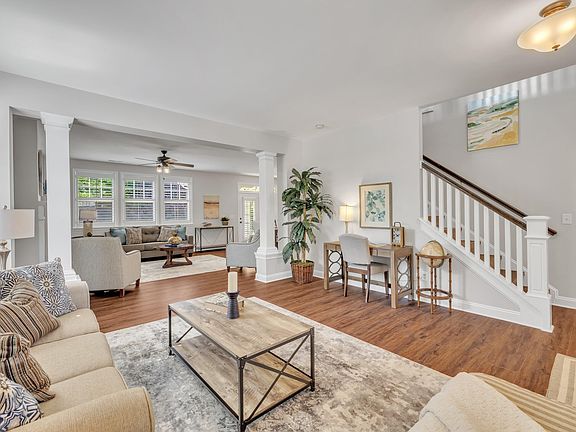 - Bookcases, Ceiling Fan(s), Double Vanity, Kitchen Island, Open Floorplan, Quartz Counters, Walk-In Shower