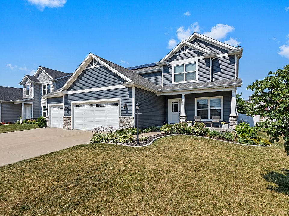 Welcome to this gorgeous, like-new Signature home in Savoy's Prairie Meadows subdivision, where modern luxury meets outdoor entertaining! This spacious 4-bedroom, 3.5-bath beauty features a 3-car garage and a fully finished basement, complete with a second full kitchen - perfect for hosting game days, holiday gatherings, or creating a comfortable guest suite. Step inside to a bright, open floor plan with a chef's eat-in kitchen, large pantry, and a cozy living room with a gas log fireplace. Upstairs, the primary suite offers two walk-in closets, a relaxing whirlpool tub, a separate shower, and a double vanity, plus two more spacious bedrooms sharing a Jack-and-Jill bath and a convenient second-floor laundry. Out back, you'll find a fenced backyard with a gas fireplace that's perfect for evenings under the stars - and with solar panels already installed, you'll save on energy bills year-round. This is the one you've been waiting for - schedule your tour before it's gone!