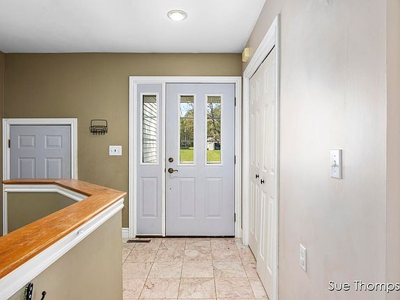 Beautiful 3 bed, 2 bath home with two fireplaces and a sunroom offering a stunning view of the wooded backyard. Beautiful deck and patio. Open floor plan w/cathedral ceiling, wood burning fireplace and a gorgeous kitchen with upscale Shrock cabinets. Main floor master has a gorgeous view and a separate room with a hot tub. Walkout level has a family room with a wood burning fireplace, 2 bedrooms and additional full bathroom - new carpeting throughout most of the basement 2019. Per previous owners: electrical upgrade 2014, newer well pump , tank and water softener. Tankless water heater 2021.