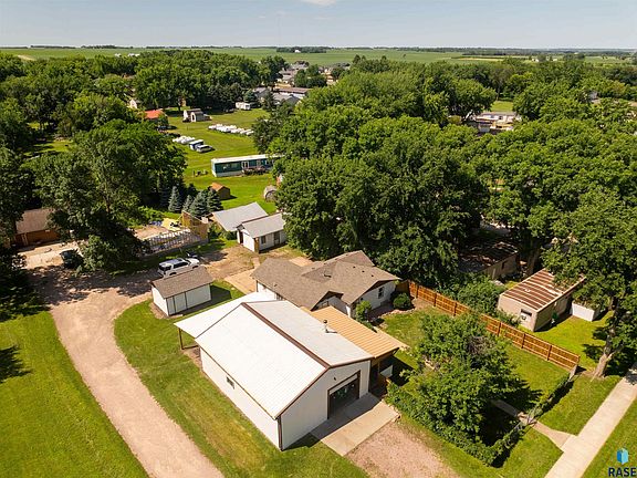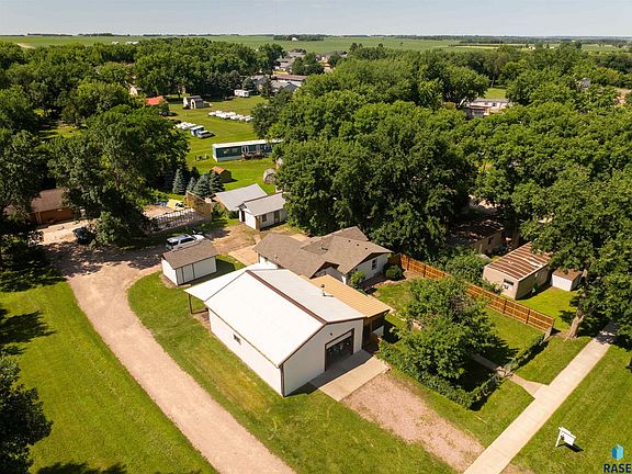 Cute 2 bed 1 bath ranch home in the quaint town of Valley Springs. Large property features a huge 28 x 36 insulated garage/shop built in 2007 with 220 and includes air compressor. 9 x 10 overhead door and frame for another 7 x 8 overhead door. Also has a new carport behind the garage. New screened in porch on the side has full electricity. Additional 14 x 24 single garage and 12 x 16 storage shed and 20 x 37 concrete patio in the back. Many newer windows throughout. Roof was replaced in '24, A/C and furnace new in '20, updated circuit breakers. Many improvements on the inside including new front & back doors, sheetrock and paint. The main floor has a small living room, good sized dining room with wood floors, and a galley style kitchen. All appliances included. 2 bedrooms and a full bath complete the main floor. Lower level has small family room, 2 non-legal bedrooms with closets, and laundry room.