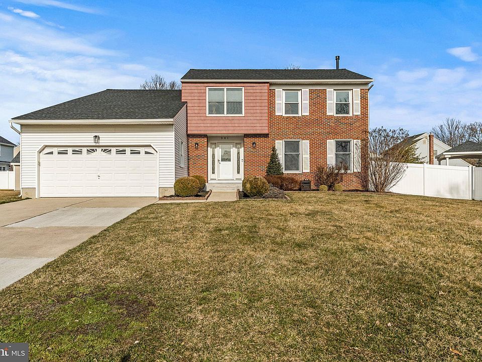 Step into the charm of 201 Brompton Drive, a stately colonial home located on the desirable EAST side of Cherry Hill, NJ, with impressive curb appeal and a thoughtfully updated interior by its original owners. This home stands out with its entire first floor adorned with stunning hardwood floors, showcasing approximately 2,705 square feet of exceptional, above-grade living space. It is enhanced by an expansive open floor plan and a spacious, finished basement with high ceilings and a private bonus room. The inviting foyer, featuring dual coat closets, leads to a generous living and dining area that promotes an open and flowing layout. The home has been freshly painted throughout. The updated eat-in kitchen (2018) opens to a deck equipped with a natural gas line for grilling, overlooking a spectacular, fully fenced backyard. Adjacent to the kitchen, a large family room, a convenient powder room, and a laundry/mudroom with direct access to the two-car garage (finished in 2024) further enhance the home's functionality. Upstairs, the primary bedroom suite boasts an extensive walk-in closet and a newly renovated (2024) en-suite bath featuring a soaking tub and spa shower. Three additional spacious bedrooms and an updated hallway bath complete the upper level. The finished basement offers extra space for leisure, complemented by a new roof (2023), windows (2021), and numerous updates throughout, including new upstairs carpeting (2024). Included in the sale are basement furnishings, such as a sofa, loveseat, and matching tables. Additionally, all existing appliances, including the outdoor gas grill, will remain. The seller is also open to considering offers for the furniture on the first and second floors to be included. This vibrant community is close to playgrounds, parks, walking trails, and essential amenities, ensuring a blend of comfort and convenience. Don't miss out—schedule your visit today!