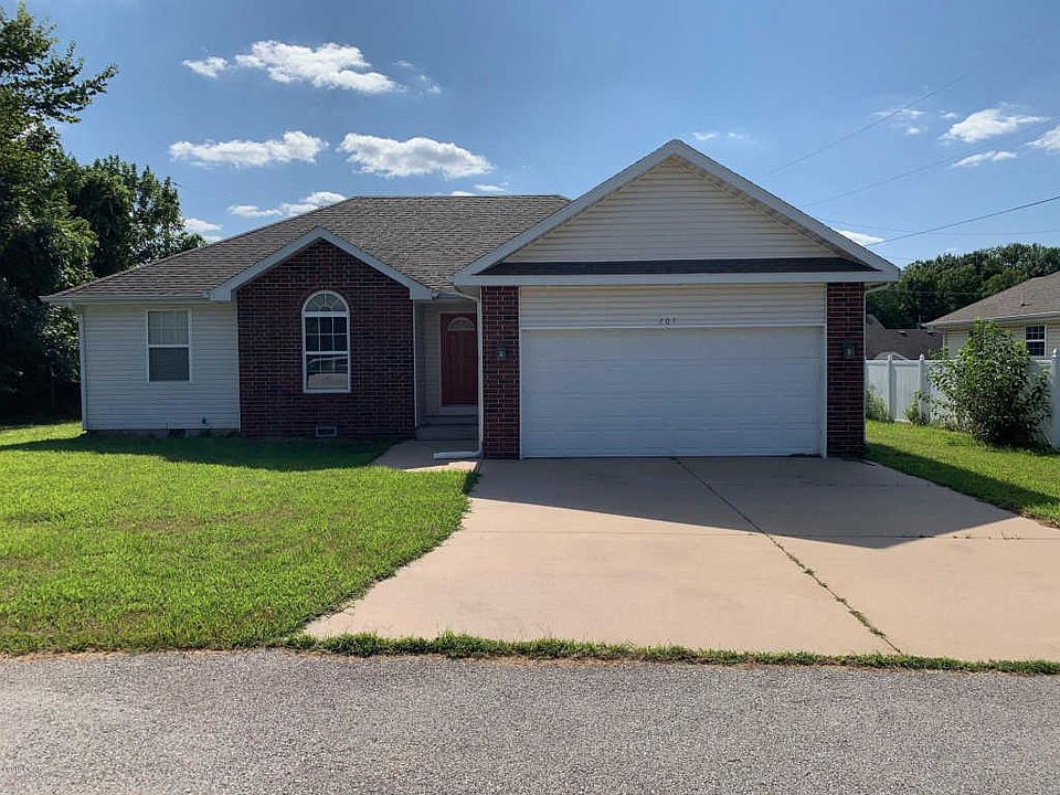 Covered front entryway offers a warm welcome while stepping into over 1200 square feet of living space! The comfortable living room offers cathedral ceilings, an abundance of natural light, and opens into an open floor design. An eat-in bar, and eat-in area for dining complete the kitchen, with direct access to the patio and expansive backyard. 3 bedrooms, and 2 bathrooms extend throughout the remainder of the home, along with utility room, and attached 2-car garage. Don't miss a chance to see all this home has to offer!