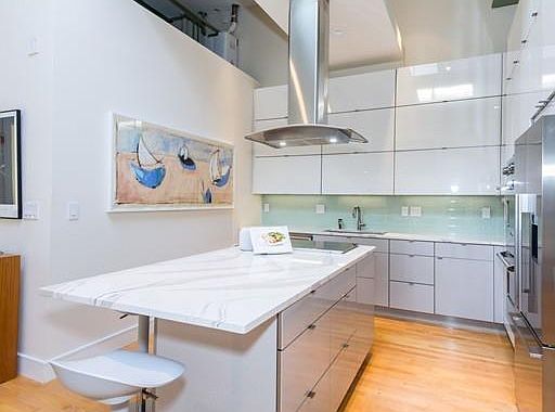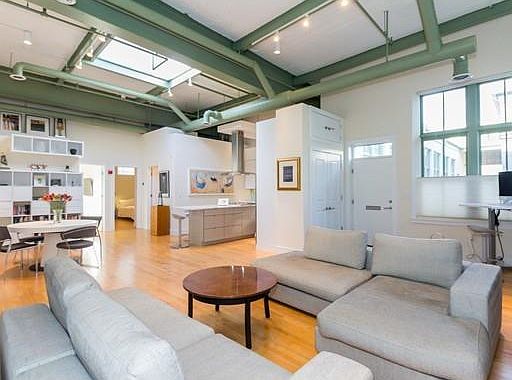 Stunning, rare loft-condo in the heart of Cambridgeport! Contemporary 2 bedroom, 1.5 bath offers soaring 14' ceilings with multiple windows, a large skylight, flooded with natural light. Open, flexible floor-plan and hardwood floors throughout. Central Heat/AC, and tankless on-demand hot water. Recent renovations and custom updates include a professionally designed, authentic Chef's Kitchen featuring: Viking appliances and Fisher-Paykel refrigerator, gas Convection double-oven and Convection Microwave, Ultracraft cabinetry, Cambria quartz countertops, plus island with 4-burner Induction cooktop and seating for 4, and hanging over-head exhaust. Well-proportioned bedrooms, one with en-suite half bath. Customized California Closets throughout. Master bath features wall-mounted double-sink vanity, spacious walk-in shower with bench, and alcove with Bosch washer/dryer. Located blocks from vibrant Central Square and the BU Bridge, across from #47 Bus stop, 10min. to the Redline T.