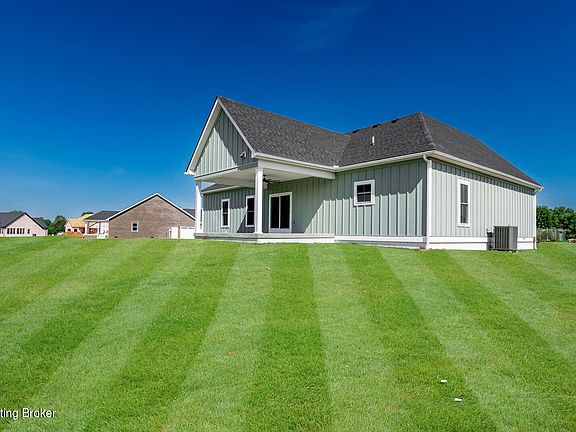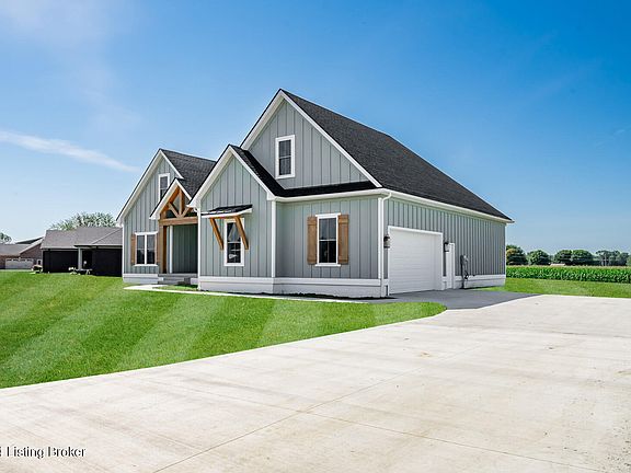 Located just outside Bardstown, KY, this brand new custom-built modern Craftsman ranch-style home offers the perfect blend of contemporary elegance and timeless design. The striking board and batten façade exudes curb appeal, while the expansive yard, just shy of an acre, provides ample space for outdoor activities and future landscaping dreams. Inside, you'll be greeted by high-end finishes throughout, including a stunning fireplace that serves as the focal point of the living area. The gourmet kitchen is a chef's delight, featuring custom cabinetry and top-of-the-line luxury appliances, all included with the home. Additionally, the property boasts an unfinished basement, offering endless possibilities for customization to suit your needs. This exceptional home is a rare find, combining modern comforts with classic craftsmanship in a serene setting.