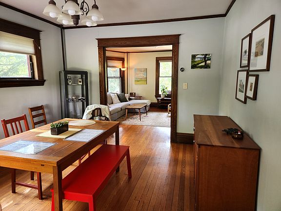 Fully-furnished Craftsman-style house in upper Collegetown/Belle Sherman (4 blocks walk to Cornell Campus) in neighborhood filled with other professors and their families. It has been set up to be 3 bedrooms and an office on the second floor, and 2 bedrooms and an office on the third floor. For reviews from the past, go to old Airbnb listing number 4308938. Washer, dryer, dishwasher, stove, hardwood floors, hand-crafted woodwork, great sun throughout day, large front porch, technically a double lot, so side lot is backyard, off-street parking for two cars. Nest thermostat, new efficient boiler, and Geospring water heater using heat exchange technology to reduce costs. Price includes professional property management with on-call staff. Two short blocks to Belle Sherman Elementary School. 3 blocks to Collegetown restaurants, yet located away from loud student rental housing. Across from quiet peaceful park which is where the school bus to the High School and the school bus to the Dewitt Middle School leave from. 1 and 1/2 baths (means one bathroom with tub/shower, sink, toilet, and another bathroom with toilet and sink). No pets. No smoking. The house is a turnkey solution for a visiting professor at Cornell with children who wants to live in a friendly neighborhood with other professors in a spacious, tastefully decorated and fully stocked home, easily walkable to a great K though 5 school, restaurants, and to Cornell. Zoned to rent to no more than 2 unrelated parties (for instance, could be a family of 6 with an au pair, but not greater than 2 unrelated people). No one in the Belle Sherman neighborhood can legally rent to more than family members plus only one unrelated person, which means not more than 2 student roommates. It cannot be two combined families or more than 2 unrelated roommates. The Ithaca city is strict about this which is why the neighborhood has maintained its character of having Cornell families. Owner is open to selling home as well. Utilities not included. No smoking.