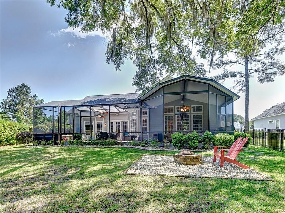 Outdoor living at its finest! - This stunning Southport offers 4BR + Office w/glass French doors, 3.5BA, & 2,773 sq/ft! Your oversized lanai makes entertaining easy w/built-in kitchen/grill, Jacuzzi tub, outdoor firepit & fenced yard lined w/live oaks! Spacious dining w/crown molding, beautiful upgraded kitchen w/white cabinets & SS Samsung appliances, large living room w/built-in surround, & new wood floors in guest BRs. Owners suite w/tray ceiling, many windows & spacious bath. Bonus over garage (4BR) w/private full bath. Just painted exterior, lush landscaping, corner lot & ideal location!