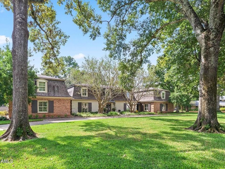 Looking for an address in Greenbriar Estates? 201 Canterbury Road sits on a .62 acre corner lot. The entrance foyer is very inviting with a circular staircase that leads you to 2 bedrooms with their own bathrooms and a large den/game room. Off of the foyer on the main level is a den to your right and straight ahead is the living room with one of the two fireplaces. To the left is the dining room. Great kitchen with plenty of storage, oversized island and open to the keeping room with a fireplace. Primary bedroom suite is off of the kitchen. Wood floors throughout the home. There is a second bedroom on the main level currently used as a workout room. There is a second staircase that leads you to an apartment with a den, kitchen, bath and bedroom with a small laundry closet. Perfect for a college kid or inlaws. Plenty of parking with a circular driveway in the front of the home and a 3 car carport. Put this one on your list to view!