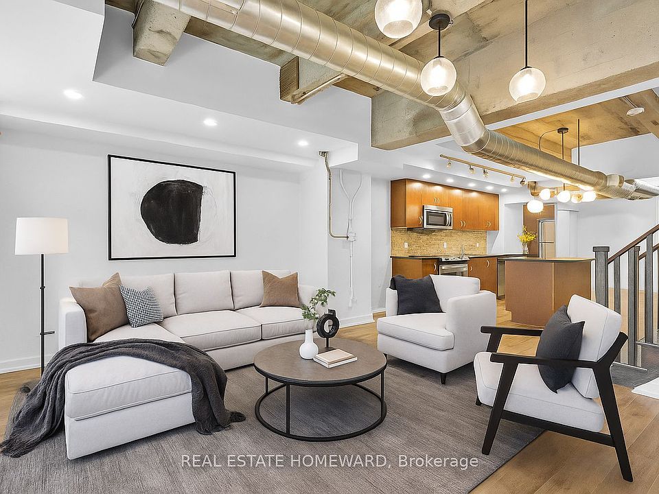 ***Great investment opportunity!!! 201 Carlaw Ave #128 Bright, Spacious Loft Living in the Heart of Leslieville. Whether you're downsizing smartly or upgrading from a smaller condo, this unique 2-storey loftin the iconic Printing Factory Lofts offers the space, style, and layout you've been looking for.With over 1,100 sq ft, 2 spacious bedrooms, soaring ceilings, and a layout that feels like a house, this home balances character and comfort. The upper level is thoughtfully laid out with two large bedrooms and a full bath, while the lower level features a generous open-concept kitchen, living, and dining area.Ground-floor access means no elevators or stairs needed. While the living area is on a lower level, large windows and clever lighting design ensure it feels open and inviting not closedoff. It's a peaceful retreat from the bustle of the city cool in the summer, cozy in the winter, and wonderfully quiet. Perfect for entertaining, relaxing, or working from home.Located in the heart of Leslieville, you're just steps from shops, cafes, restaurants, andtransitideal for anyone who values walkability and a vibrant neighbourhood vibe.Whether you're looking to simplify, spread out, or find a home with real personality, Unit 128 is that rare blend of space, style, and location.Includes underground parking, ensuite laundry, and secure building access. Exciting transit option coming to the area as the new Ontario Line will have a stop close by at Carlaw and Gerrard. Some Photos are virtually staged. Currently tenanted under a one-year lease.
