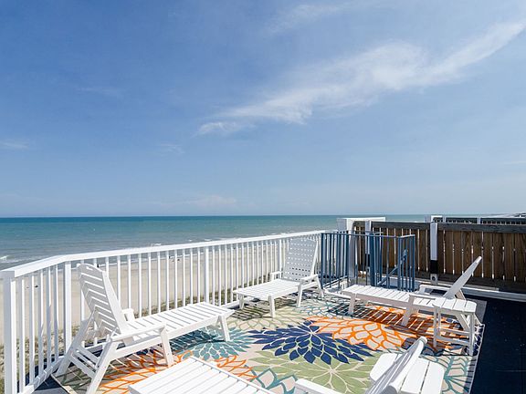 This gorgeous unit is on the most desirable top floor, offering panoramic views of the beach and ocean from both the covered balcony as well as the private rooftop deck. The unit boasts three bedrooms and two and a half baths, a full kitchen with open concept to the spacious dining and living areas. The primary suite has a King bed, sliding glass doors that open to the balcony, en suite bath with double vanity and a large walk-in shower. The second bedroom has a Queen bed and is conveniently located beside the hall full bath with tub shower. The third bedroom has a Full bed and on suite half bath. Extras include an in-unit washer/dryer, 60" 4K TV in the living room, and high-speed internet access.