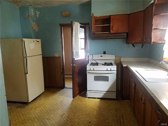 Side by two family in Solvay. Great opportunity for sweat equity. Each side has livingroom, dining room, large kitchen, rear entry, front porch and unfinished basement with laundry hookups. Roof is eight years old and siding needs minor repair and painting. Interior needs full remodeling. Property needs work but should pay excellent dividends as rental or live-in home. Agent is owner.
