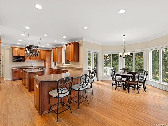 A picturesque lakefront colonial set majestically on 1 acre in North Stamford. This classic 5 Bedroom, 4.5-Bathroom boasts an entire lower-level in-law suite with a complete kitchen, fireplace, laundry room, and private entry. The state-of-the-art main-level kitchen has a Sub-Zero refrigerator, double ovens, and dishwashers. The adjacent Family room has soaring vaulted ceilings with a grand fireplace and a wet bar, and the upstairs features the primary suite with two walk-in closets and an en suite with a Jacuzzi tub and steam shower. The upper floor includes three additional bedrooms, one with an en suite and a full hallway bath. This home is an entertainer's dream with the main-level deck and spacious lower-level patios; notable features include two laundry rooms, an in-home vault, control four home automation, Cat 6 wiring, and a yard sprinkler system. Easy access to downtown Stamford, New Canaan, and less than a 1-hour drive to New York City.