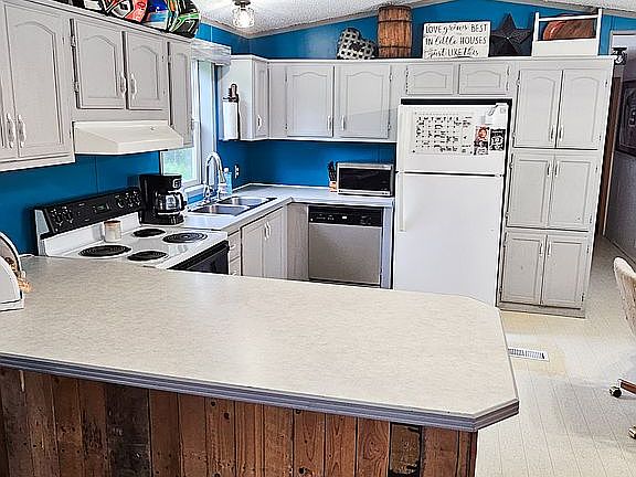 Friendship Encore XL manufactured in 1997. We are the second owners of this cozy little home. New tin roof installed in 2019. Beautiful tongue and groove in the living room and custom entertainment center. Every light fixture/fans in the home, including the addition/mudroom has been replaced with updated fixtures. Custom window valances installed in the living room and kitchen. Can easily be removed if you wish. The home comes with a dishwasher, fridge, washer/dryer, stove and chest freezer. The 8x10 addition/mudroom is the perfect addition with a storage closet as well. The home is currently located at Woodland Terrace Mobil Home Park in Bigfork. The lot rent very affordable, includes water/sewer. On MN Power. If you'd like to continue residence at this location an application submitted to the manager will need to be filled first, we can help with that! If you wish to move it to another location this home is capable of that as well. There is also a garage unti available for a small extra fee through the mobile home park. The home is extremely well insulated and never had any frozen pipes or issues getting through our cold Minnesota winters. Our corner lot location is pretty secluded and over looking a large gorgeous yard with a walking trail down the creek.