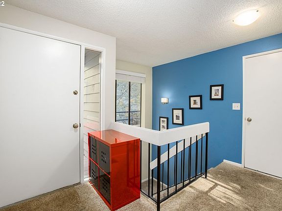 Treehouse vibes in Mountain Park! Reverse townhouse floorplan, bedrooms on main floor with kitchen, dining & living room below. Adorable primary suite with balcony, dual closets, separate vanity & shared bathroom. 2nd bedroom could be opened up to lofted area above living room. 1 car garage + extra parking spot. Appliances in house included. Mtn Park amenities! Pools, hot tub, fitness center, walking paths, preschool access & more. Convenient location to Lake Oswego shopping, SW Portland and I5!