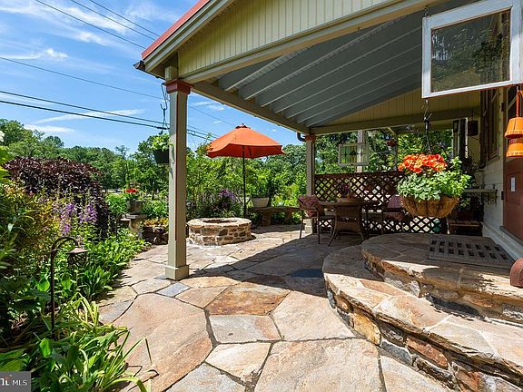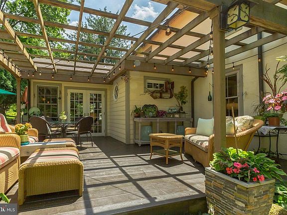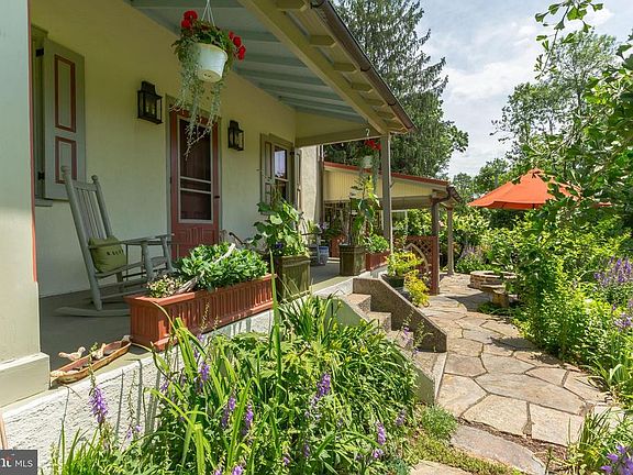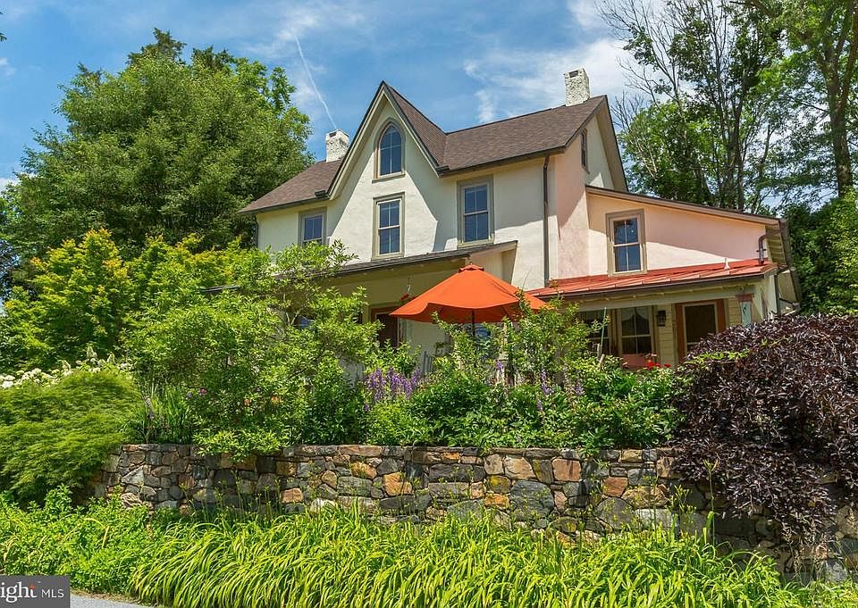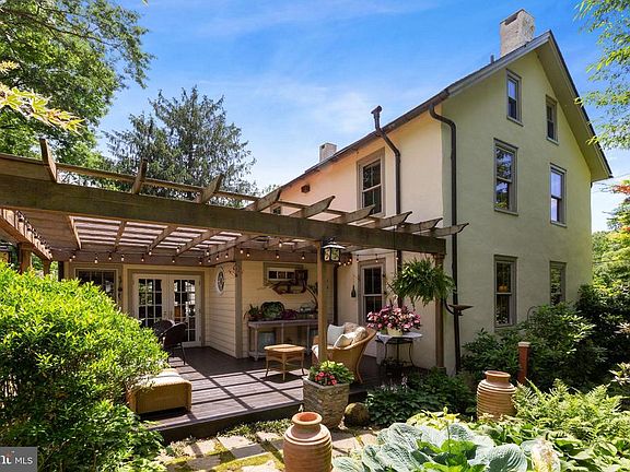 An extraordinary treasure tucked into private, lush landscaping, and bordering Parish Trail Nature Preserve along Red Clay Creek~ the serenity of this setting belies the fact it is just minutes from the borough of Kennett Square with restaurants, pubs, and shopping. Lovingly restored and impeccably maintained, this turn-key 1880s Victorian farmhouse is simply superb. The sellers have added a large living space, with vaulted ceilings, a gothic window, high baseboards and reclaimed floors from the stage at Sunset Park in Jennersville. French doors exit the living room to an outdoor oasis complete with deck, pergola, paths, firepit and gardens you must see to believe. Back inside you~ll find a handsome custom kitchen with cabinetry milled on-site, leathered granite counter tops, stainless appliances including a GE Monogram dual fuel (electric oven, gas stovetop) range, stainless undermount sink, and island bar seating. Adjacent is a large dining room with original floors, high baseboards and crown molding. Continue into a separate office/den with windows on 3 sides and expansive built-in bookcases with storage. Finishing off the main floor is a newly added, full travertine-tiled bathroom with unique windows, an entryway with built-in storage and pantry, and a powder room. On the second floor you~ll find 2 bedrooms, both with brand new carpet (hardwoods underneath), generous closet storage, and a hall bath with granite countertop, built-in linen closet, and a tub/shower combination. The third floor is a true respite, with abundant light from character windows and brand-new skylights. The two connected rooms, with vaulted ceilings and wrap around built-in shelves, can serve as a bedroom, office, artist~s loft, etc. There is a basement with laundry area, workshop space and extra storage. The detached two-car garage has a large storage area on the second floor that can also be accessed at ground level in the back. Perfect for kayaks! This space could easily be converted into a play area, office or studio. Recent improvements include a brand-new roof, skylights, tankless water heater, and more. Refer to the list of extensive upgrades. This is a home that retains original features while tastefully updated to accommodate 21st century living. Come see for yourself. Welcome home!