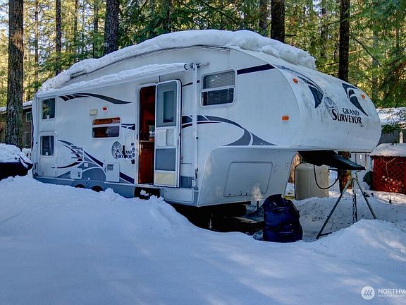 Centrally located lot near all amenities in Division 6. Lot is adjacent to a trail so there is additional privacy and gives the lot a feeling of being larger than the 3,485 sqft size. Insulated shed that can be used as a flex space and/or storage. Firewood shelter with wood will make you ready as soon as the rec fire ban is lifted. Covered firepit lets you enjoy year-round camp fires. Uncovered deck and covered picnic table. 2005 Surveyor fifth wheel is included in sale . Trailer has multiple sleeping areas inside. The Glen is zoned recreational for 120 days of use out of the year and has all the amenities you could want, including 2 pools, hot tub, Pickleball, library, laundry mat, 2 clubhouses, 24 hr security, gated entry, & play areas.