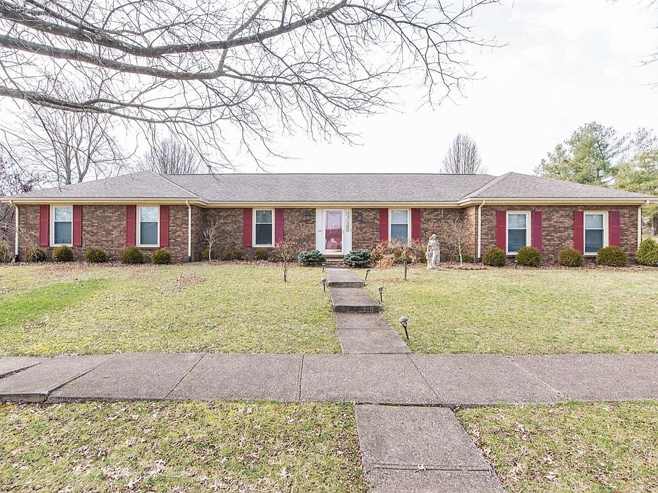 An all brick ranch on a big, beautifully maintained corner lot in the established and sought after gorgeous Fontaine Estates subdivision. From the custom cherry kitchen cabinets to the like new hardwood floors, fresh paint and carpet this home is move in ready. It features a formal living room; formal dining room; den with fireplace; additional eating area off the kitchen; an added bathroom with shower; large laundry room; large bedrooms; a newly covered patio with ceiling fan, over looking the large backyard; shed; gorgeous landscaping and newer roof (2017.)