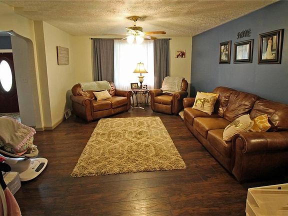 Very Spacious 2 story home offers an exceptional floor plan. Over-sized entryway with closet. New engineered hardwood flooring from entryway to living room. Huge Eat in Kitchen/Dining room-NEW with an abundance of custom cherry cabinets, soft closure drawers, pantry with rollouts, granite counters & a tier island with bar stool seating, Stainless steel appliances included. Main floor laundry room has plenty of space for organizing and full wall length closet. MASSIVE master bedroom with an attached, large full bathroom. 3 additional bedrooms are VERY LARGE with PLENTY of CLOSETS. High ceilings in the garage. LARGE open basement has lots of possibilities. FENCED in yard and a nice patio for entertaining. Beautiful front porch welcomes you to this lovely home!