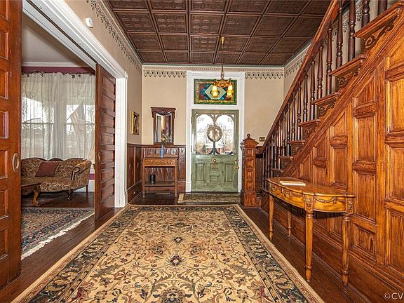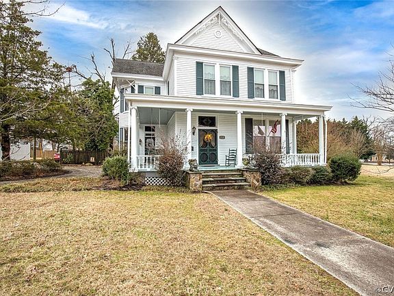 SEE VIRTUAL TOUR FOR ALL PICTURES. Come home to the charming town of Blackstone and enjoy the life and community of a quaint small Virginia town. Classic features abound, including stained glass transoms and decorative ceilings throughout. On a corner lot with an adjacent empty lot available for purchasing separately. The entry foyer greets you with wood wainscoting and the adjacent rooms feature mantels, pocket doors, moldings, 7 fireplaces (2 with gas logs}. Half circle drive on the side and enter on the wrap around porch. Many extras, you have to see this property to appreciate the value. Second floor has 3 bedrooms, walk-in closet/dressing room, 2 full bathrooms, laundry room, morning room, office/study, and a balcony. Family room on first floor can also be a 4th bedroom, or first floor office with its own entry door from the side porch. Front and rear stairways that are classic to homes of this period. The updated eat-in kitchen opens onto the fenced and brick paved patio where you will find a secluded hot tub. Walk to a park and downtown.