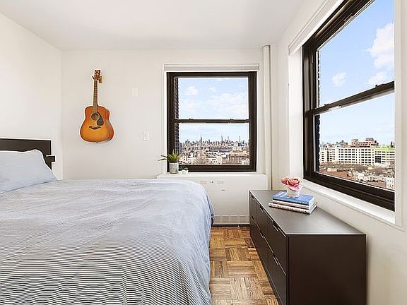 Aside from the stunning views and light, the smart layout maximizes the square footage. The bedroom fits a king or queen bed and dresser. The dressing area could be further built-out to create a walk in closet with an inspiring outlook to start your day. The updated windowed kitchen has stainless steel appliances (including dishwasher) and a pass through countertop perfect for entertaining. The large main room can easily accommodate both a dining table and living area. Newer windows and recent upgrades to radiators in unit make a comfortable environment for shareholders!