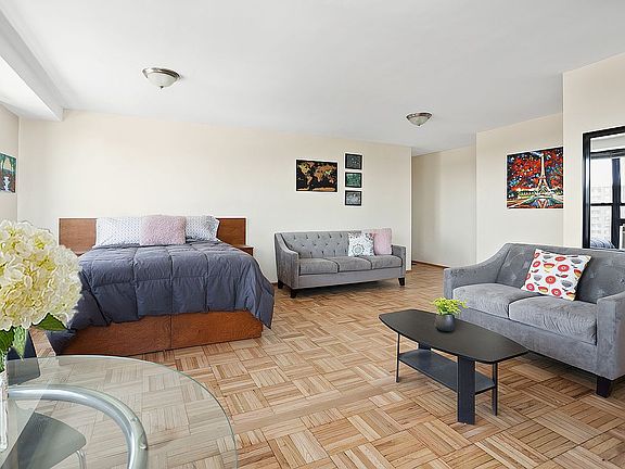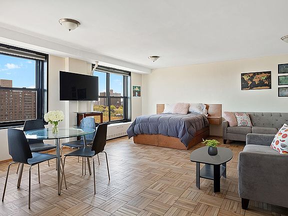 Unsurpassed views from this top floor, extra-large loft/studio - Easily convertible to a Junior 1-Bedroom! This is a bright, spacious, move-in ready co-op home located in historic Clinton Hill (just 20 minutes from Manhattan), with five oversized windows with unobstructed views of Brooklyn and the Manhattan skyline. The loft-like open floorplan is spacious enough for distinct sitting, dining and sleeping areas, and a small bedroom has been added to other similar units in the building. The modern renovated kitchen is large so you can really cook and it features stainless appliances (including a dishwasher), clean and modern cabinetry, and a window. All the windows were replaced with new and more efficient windows in 2020, and the original oak floors were just refinished throughout, plus it has two large closets with extra storage space. The building is part of the Clinton Hill Cooperative Apartments and has renovated laundry facilities, elevators, an on-site maintenance staff, 24-hour Security, bike storage, package room and a common courtyard. New, more efficient and quiet windows were installed in all apartments in 2019/2020. Also, Radiator Labs' Cozys were installed on all radiators. The Radiator Lab Cozy is a smart, internet-connected, thermostatic cover for radiators. The G and C trains are the closest, but nearly every train in the system can be found nearby. Neighborhood amenities include some of the best restaurants in the borough along Dekalb Avenue and Myrtle Ave and new attractions in the Navy Yard, including a ferry stop, Russ and Daughters, and Wegmans grocery store. Fort Greene Park, two farmer's markets, BAM, Pratt Institute and sculpture garden, City Point, Barclay's Center, plus the newest Whole Foods and Apple store are within minutes. Pets are Allowed! Pied-a-terre OK Sublets permitted after two years of ownership Wired for Fios The Clinton Hill Co-ops are Smoke Free Buildings.
