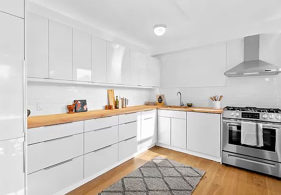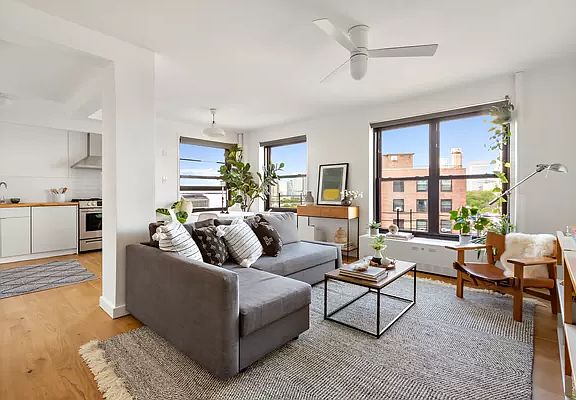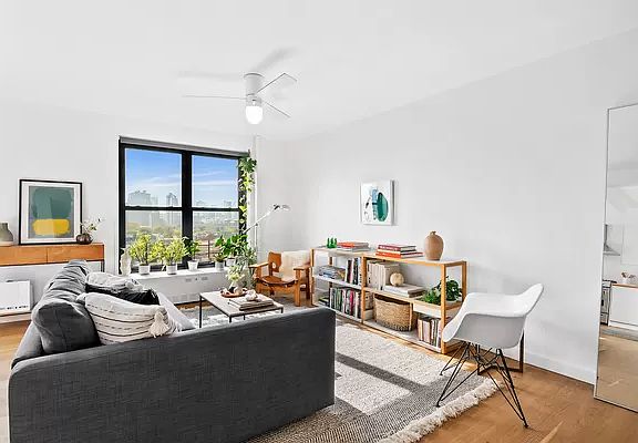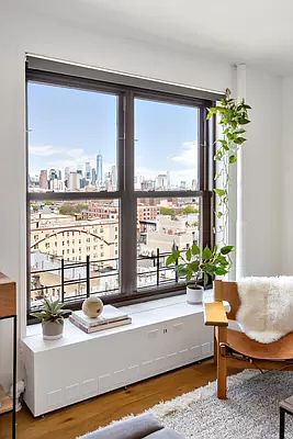 A beautifully renovated convertible two-bedroom home with incredible Manhattan skyline views and natural light in Clinton Hill. With six huge windows framing city views in one direction and Brooklyn tree tops and church steeples in the other, this lovely home offers an oasis of light from the moment you walk through the door. Upon entry, you are greeted by gorgeous, wide-plank white oak floors in the foyer that lead to bountiful light pouring the large windows of the living room. The open and spacious kitchen features custom cabinetry with an integrated paneled fridge and dishwasher to create a clean, modern aesthetic. The butcher block countertops compliment the classic subway tile, and a brand new five-burner pro series Frigidaire stove and hood will keep every chef happy. Currently configured as a one-bedroom, the large dining area (with two exposures) of this flexible space easily converts to a second bedroom. While the benefit of two exposures in the primary bedroom make the current configuration of an en-suite windowed nursery/home office possible, it can easily be converted back to one spacious bedroom. The views in this room are also stunning and include the Brooklyn and Manhattan Bridges, the Empire State Building and the Freedom Tower. The handsome bathroom features dark slate floor tiles, crisp white subway tiled walls, a Toto commode and a white lacquered elevated vanity. An overhead rain shower accompanies a hand held shower head to create a spa-like experience for the perfect beginning or ending to your day. The Clinton Hill Coops is an established cooperative complex with incredibly strong financials and a warm community spirit. This pet-friendly, elevator building features a lush, planted courtyard, bicycle storage, live-in super on campus, and a spotless laundry facility and is nestled within a classic brownstone neighborhood that is wonderfully convenient to the exceptional dining and shopping on DeKalb and Myrtle Avenues, BAM, Fort Greene Park, and the G (a block away) and C trains. Co-purchasing, pied-a-terre, parents buying for children, and other structures are considered on a case-by-case basis, and subletting is permitted after two years of ownership. Please note there is a 5% flip tax (payable by seller).