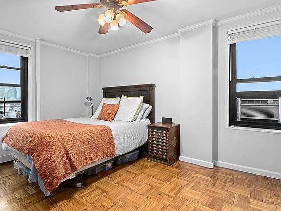 This high-floor, sunny Junior 2-bedroom has open Brooklyn and Manhattan views and features original hardwood parquet floors throughout, large windows with Western exposure providing an abundance of natural light, and an open kitchen for easy entertaining.