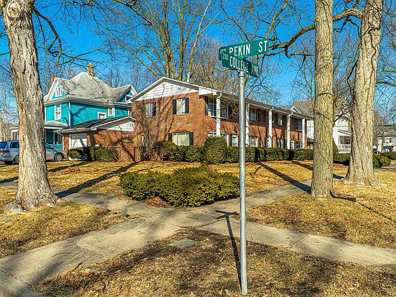 A truly regal prominent mostly brick two story corner lot colonial style fourplex situated in the heart of historic Lincoln, Illinois just steps from the historic downtown district! Two main floor units -- two upper level units -- each unit consists of an open living/dining concept with a front facing bay window, equipped efficient kitchen, two bedrooms, and a full hall bath. Main floor units have separate front facing exterior entry points and attached garages. Upper level units are entered through a front facing access point which leads to a foyer/staircase -- each upper level also has a garage stall which is attached, but is accessed from exterior of structure only. 201 also features a great private side facing patio. Newer architectural roof on main structure. Current owner pays for sewer and garbage -- each tenant pays for gas/electric and water. Shared laundry accessed via rear stairwell. Investors -- take note and ACT QUICK!