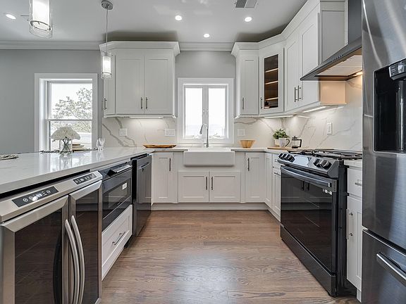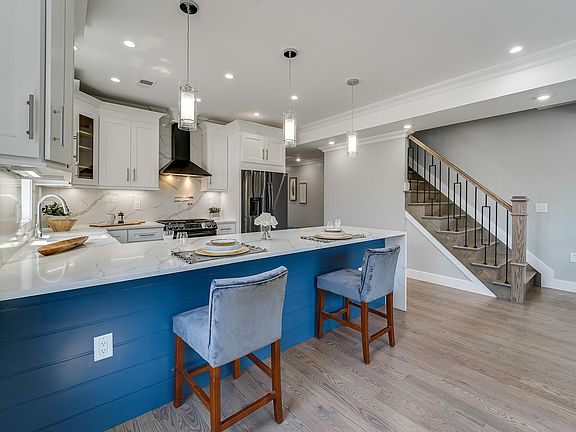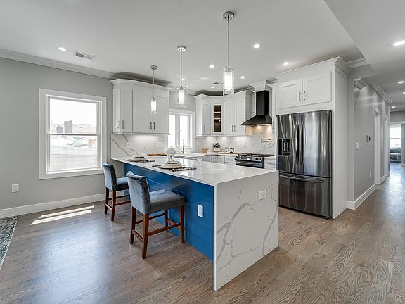 Elevate your living standards with these high-end, high tech, new construction homes in The Heights. Each home – with at least 3 beds & 2 baths - includes private outdoor and garage parking with electric charging station. Light streams in through the oversized Pella windows illuminating the open floorplan with classic crown molding and gleaming hardwood flooring throughout. White eat-in kitchen shows style with waterfall quartz counters & backsplash, custom shaker cabinets, pot-filler, apron sink, black Samsung appliances and wine fridge. A tech-lover’s dream wired for plenty of mod cons, including smart doorbell, smart thermostat, camera, security system and central vacuum. Unit 2 gives way to a full-floor private roofdeck with 360 degree views ideal for entertaining or daily sightseeing! Bathrooms bring coveted upgrades like double-vanities, herringbone tile in soaker tub with multi-system shower and niche, and glass shower with pennytile accents. Primary ensuite hosts spacious built-out walk-in-closet for optimal storage and organization. On a quiet tree-lined street of The Heights, and walking distance to JFK Blvd, Washington Park and 9th St Light Rail station, this neighborhood is known for great community, excellent schools and easy NYC access, all amid the eclectic and vibrant scene of Jersey City Heights.