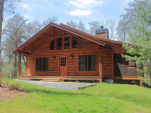 Immaculate, comfortable, and cozy 2/2 well-built rustic cabin in a private setting, gated community only 3 miles from downtown Blue Ridge. Perfect for empty nesters, couple wanting to downsize, or the perfect relaxing mountain getaway retreat. Feels much bigger than the square footage with the screened porch opening off the great room (with wood burning fireplace) and the large back deck for outdoor entertaining. Two bedrooms on main level and large loft room for an office, quiet space, hobbies, or guest sleeping. Large kitchen with custom cabinetry throughout the home. Large laundry closet with storage space. Fenced back yard for the 4-legged companions and plenty of parking. And enjoy the Toccoa River with deeded access. Nice creek along north border. Additional acreage available.