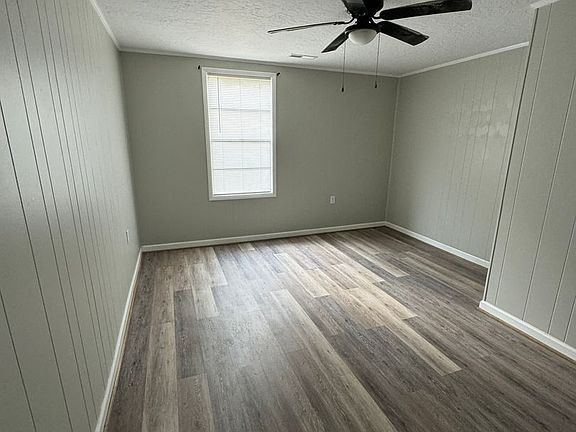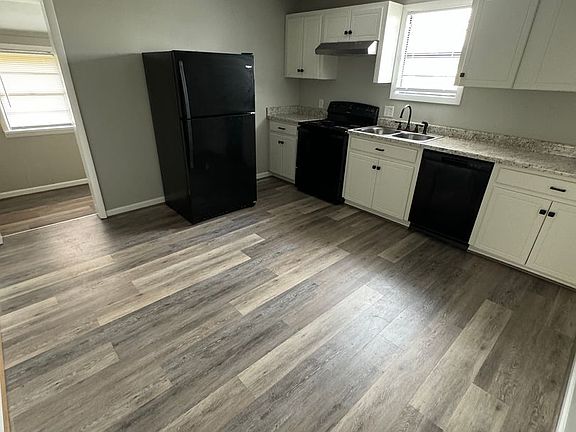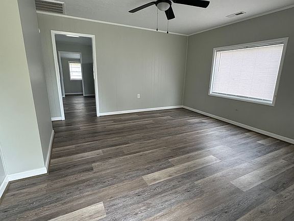 Single level home on large, corner lot featuring two bedrooms, one bathroom with laundry closet, living room, kitchen with electric range, fridge, and dishwasher. Home has laminate, wood-look flooring throughout (no carpet) and fresh paint. No Section 8. Owner Must Approve All pets.