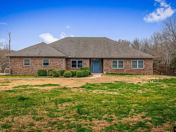 Custom brick 3 bedroom, 3.5 bath home located just on the outskirts of town. Spacious open floor plan with split bedroom design. Cozy fireplace in living room that you are sure to enjoy. Perfectly designed kitchen with plenty of counter tops and cabinet space including breakfast bar and built-in desk. Loads of windows to bring the natural lighting inside. Two large master suites with walk-in closets, one would be great for extended family member. 2 car garage, heated and cooled workshop. All this situated on 2.38 acres m/l including a nice size pond.