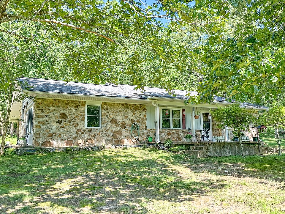 Welcome to your private country retreat! Nestled on 5 beautiful acres, this spacious 3-bedroom, 3-bathroom home offers peaceful living with plenty of room to grow. The thoughtfully designed layout includes two large living areas and a bonus room with a closet-currently used as a dining room, but easily converted into a fourth bedroom. Enjoy cozy evenings by the gas log fireplace in the back living room or gaze out over the pretty green pasture through the large window in the front living room. The home is laid out perfectly for a large family, those who like entertaining, or ones who enjoys each having their own space. Don't want to forget the multi-functional laundry room plus the small attached carport that includes a utility/storage room for added functionality. The beautifully landscaped and shaded yard features a sidewalk leading to a charming gazebo with two swings and a large pavilion-perfect for relaxing or entertaining. The property is equipped with additional water and electrical hookups, offering the option to add a second home or build another shop. A well-equipped workshop with storage and barn space has both water and electricity, ideal for hobbyists, farming, or animal care. A storm cellar is located behind the home and requires only minor repair to the door. Two HVAC units serve different sections of the house for maximum comfort, and the propane water heater and recently replaced propane furnace add to the home's efficiency. The property uses reliable well water. Most of the land is open pasture with scattered shade trees-ideal for raising goats, sheep, chickens, or even a horse. Whether you're looking for a peaceful homestead or a functional hobby farm, this property offers endless potential. Don't miss this opportunity to own your own slice of country paradise!
