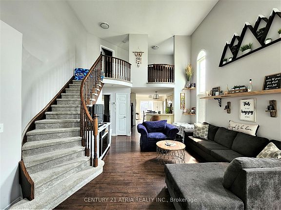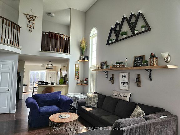 An absolutely lovely and bright townhouse(1832 Sqft)on a corner lot located in Peterborough's popular westend featuring open concept main floor with cathedral ceilings, large kitchen with ample counter and cabinetry, dining room with walkout to deck. The main floor includes a primary bedroom with a 4 piece ensuite, large linen, and walk-in closet. You will also find a powder room and alaundry room on this floor. Upstairs you will find a cozy seating area overlooking the living room, two generously sized bedrooms and a Jack & Jill 4-piece bathroom. The basement is partially finished, and is a great space that hasn't quite reached its full potential. A drop ceiling and potlights would sure make that space come to life. The bedroom areas and stairs are carpetted.