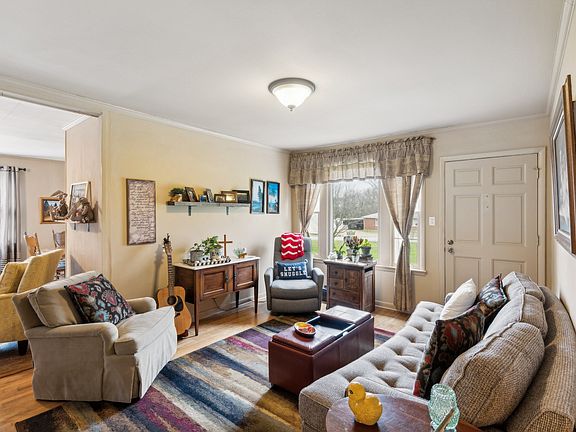 Darling home on corner lot! Hardwoods in living room, hall & bedrooms! Laminate in den, kitchen & dining room! Well cared for home with roof and HVAC being 2 years old! Tiled bath! Large yard with nice deck on rear of home, storage building and firepit area! Very nice home for folks wanting a one level home! Appears to be in great shape! Sold as is!