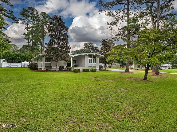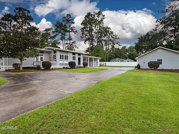 Welcome to this stunning contemporary home, where modern elegance and outdoor living blend seamlessly. Designed with an emphasis on open spaces, this residence features an abundance of windows that offer picturesque views of the surrounding landscape. Step outside to discover an oasis tailored for relaxation and entertainment. The expansive patio, complete with a stylish side patio that can be used as a firepit area or an additional seating area, is perfect for gathering with friends and family. Dive into the sparkling inground pool or enjoy the comfort of the adjacent pool house. A private outdoor deck, accessible only from inside the home, provides a retreat to enjoy the beautiful outdoors. The home's contemporary design is showcased through four spacious bedrooms and three bathrooms. The primary suite and an additional bedroom each feature their own ensuite bathrooms, while a Jack and Jill bathroom serves the other two bedrooms. The open-concept living area, complemented by a formal dining room and living space, creates a seamless flow for entertaining and daily living. The eat-in kitchen is a culinary delight with lots of ample natural light. An interior courtyard with a sitting area adds an extra touch of tranquility to the home. The foyer, adorned with elegant stone tile flooring, provides a warm welcome. Additional conveniences include a dedicated laundry room and a three-car carport with integrated storage.The property also has a versatile outbuilding, ideal for use as an entertainment space, workshop, or extra storage. This building is equipped with heating and cooling, a sink and cabinet area, and rear storage. An attic offers additional storage solutions. This exceptional home perfectly marries modern design with luxurious outdoor living, making it an ideal choice for enjoying the best of N.C's climate and is just a short drive from N.Myrtle Beach, SC. Don't miss this one of a kind home! (approx. lot lines in photos). LISTING AGENT IS ALSO A OWNER.