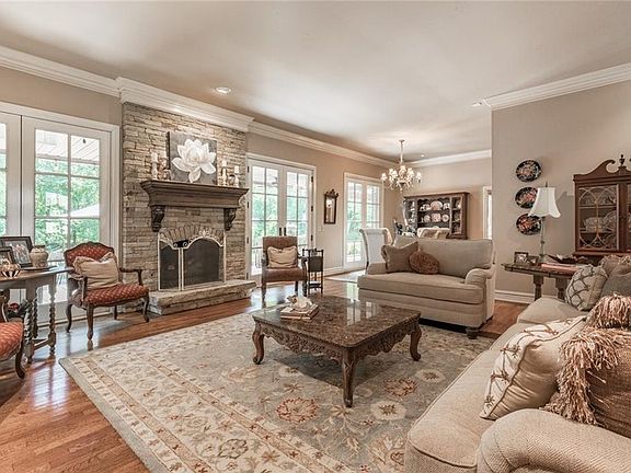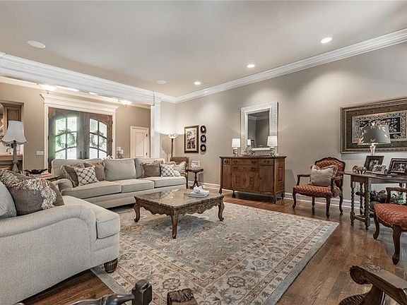 A unique find in East Edmond! Walk thru custom designed double doors, look up at custom painted foyer ceiling w/ triple crown molding, walk across hand-scraped hardwood floors into spacious living room w/ stacked stone fireplace, french doors/windows overlooking wooded private backyard, huge covered deck, pool, & cabana; you'll never want to leave. Chef's delight kitchen w/ huge island, walk-in pantry, built-in frig, 5 burner gas range, double convection oven, custom painted/glazed cabinets, granite/tile. Darling sunroom w/ vaulted ceiling, brick floor. Show stopping built-in hutch in dining rm. Beautiful bar w/ built-in wine rack, copper sink, granite. Master bed w/ sunken sitting area w/ fireplace Totally remodeled custom designed master bath. Study/library w/ walls of custom woodwork. Oversized bedrooms w/ large closets. Laundry w/mudroom area, sink, storage, built-in hamper. Lovingly designed home w/ great attention to detail. Roof is 50 year impact resistant. Convenient location!