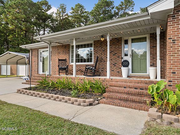 201 Currituck Rd, Riegelwood, NC, is a charming all-brick country residence that offers the perfect escape from the hustle and bustle of a busy life. Sitting on 1.58 acres with an incredible 39.4 X 27.5 garage this property offers space and versatility. With 3 bedrooms, 2 bathrooms, and a spacious 1,809 square feet of living space, this home is the perfect size for a growing family or couple. The vintage charm of this house is seamlessly complemented by modern accents, creating a timeless appeal. As you approach, a paved driveway leads you to a welcoming covered porch. Once you step through the front door, you're greeted by a cheery foyer with beautiful hardwood flooring that extends throughout the hallway, living room, and the owner's suite, enhancing the warm and inviting atmosphere of this rural retreat. The heart of this welcoming residence is the spacious kitchen dining combo. The U-shaped kitchen boasts an efficient design, offering ample cabinets and countertops for storage and meal preparation. For added convenience, a generous walk-in pantry provides extra storage space. The dining area is roomy enough to accommodate a large table, perfect for gatherings and family meals. The adjacent bonus room, accessible through a charming Dutch door, offers versatility, making it suitable for use as a den, playroom, dedicated office, or even a convenient mud room thanks to its front entrance. The residence also features a spacious living room, providing yet another inviting gathering space for your family. The home offers three cozy bedrooms, ensuring comfortable sleeping quarters for all. The owner's suite is a private oasis, complete with an en suite bathroom and dual closets. For the convenience of family and guests, a hall bathroom is readily accessible. Additionally, a practical laundry closet is conveniently located just outside the bedrooms, making daily chores a breeze. This property provides ample space for outdoor activities, offering room to roam and play,
