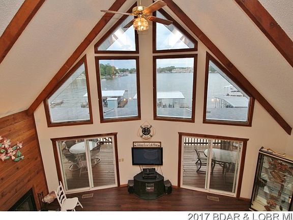 Sought after Daisy Rd location with a level lot and the best views of the wide cove at the 8 mile marker. Included are 4 SLIPS!!! Two 11x30 slips in your private concrete dock and two 10x24 slips in the community dock as well as 3 lifts! Your family & friends will enjoy the community pool just right up the hill and its also right around the bend from Camden on the Lake and Shady Gators, 2 fun Lake destinations. A little updating needed, but with over 2,600 sq. ft. you'll have room for everyone. Two bedrooms on main level, 1 loft area and the lower level is being used as a master. This is the one you've been waiting for!!!